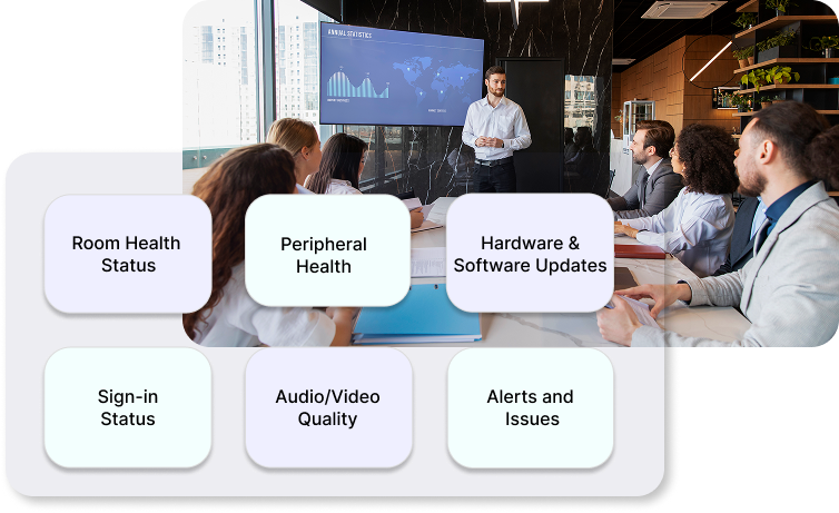 Fix it Before They Call. Automated alerts for disconnected mics, camera failures, or "hidden" PC crashes.