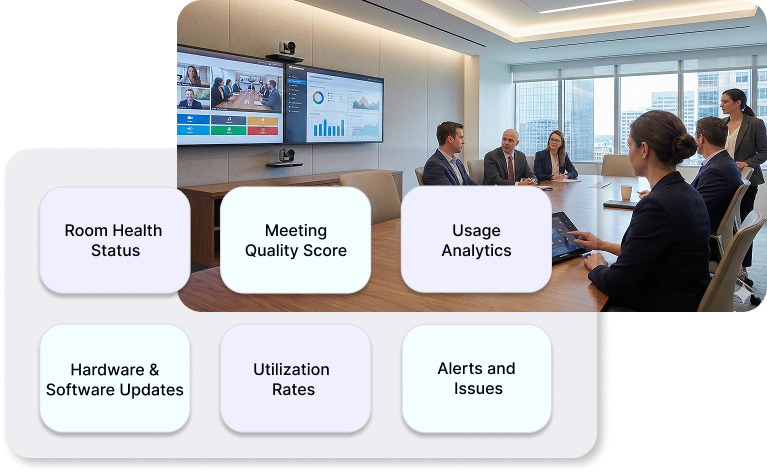 Any Hardware, One Screen. Monitor DTEN, Neat, Logitech, Crestron, and Mac/PC setups side-by-side without switching apps.